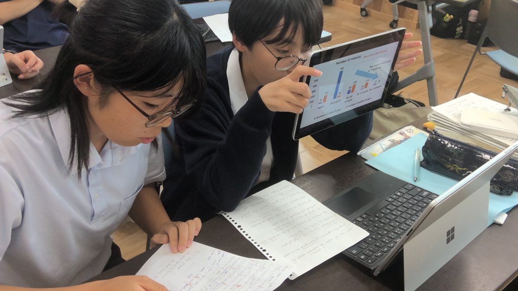 発表やQ&Aセッションでの受け答えなど、多くの改善点を得ることができました。次週、本時の反省を踏まえて改善を図り、再来週もう一度、海外とオンラインでつながり、英語口頭発表に臨みます。